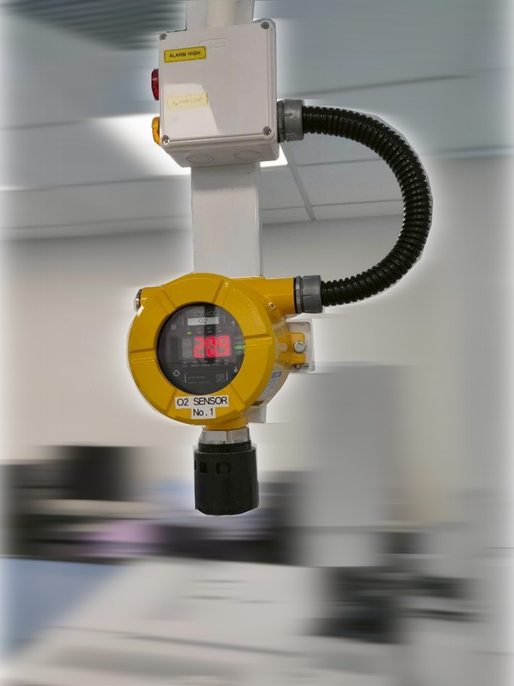 ก๊าซออกซิเจน (O₂) เป็นก๊าซที่มีบทบาทสำคัญต่อการดำรงชีวิต แต่หากระดับต่ำกว่าค่ามาตรฐาน อาจทำให้เกิดอาการเวียนศีรษะ หายใจติดขัด หรือหมดสติได้ การติดตั้งระบบตรวจจับก๊าซจึงเป็นส่วนสำคัญของระบบความปลอดภัยในห้องปฏิบัติการ โดยเฉพาะในสถานที่ที่มีการใช้งานก๊าซเฉื่อย เช่น ไนโตรเจน (N₂), อาร์กอน (Ar) เป็นต้น